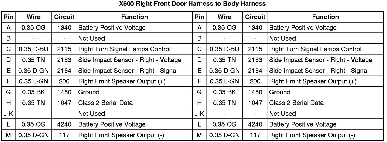 X600 Right Front Door Harness to Body Harness