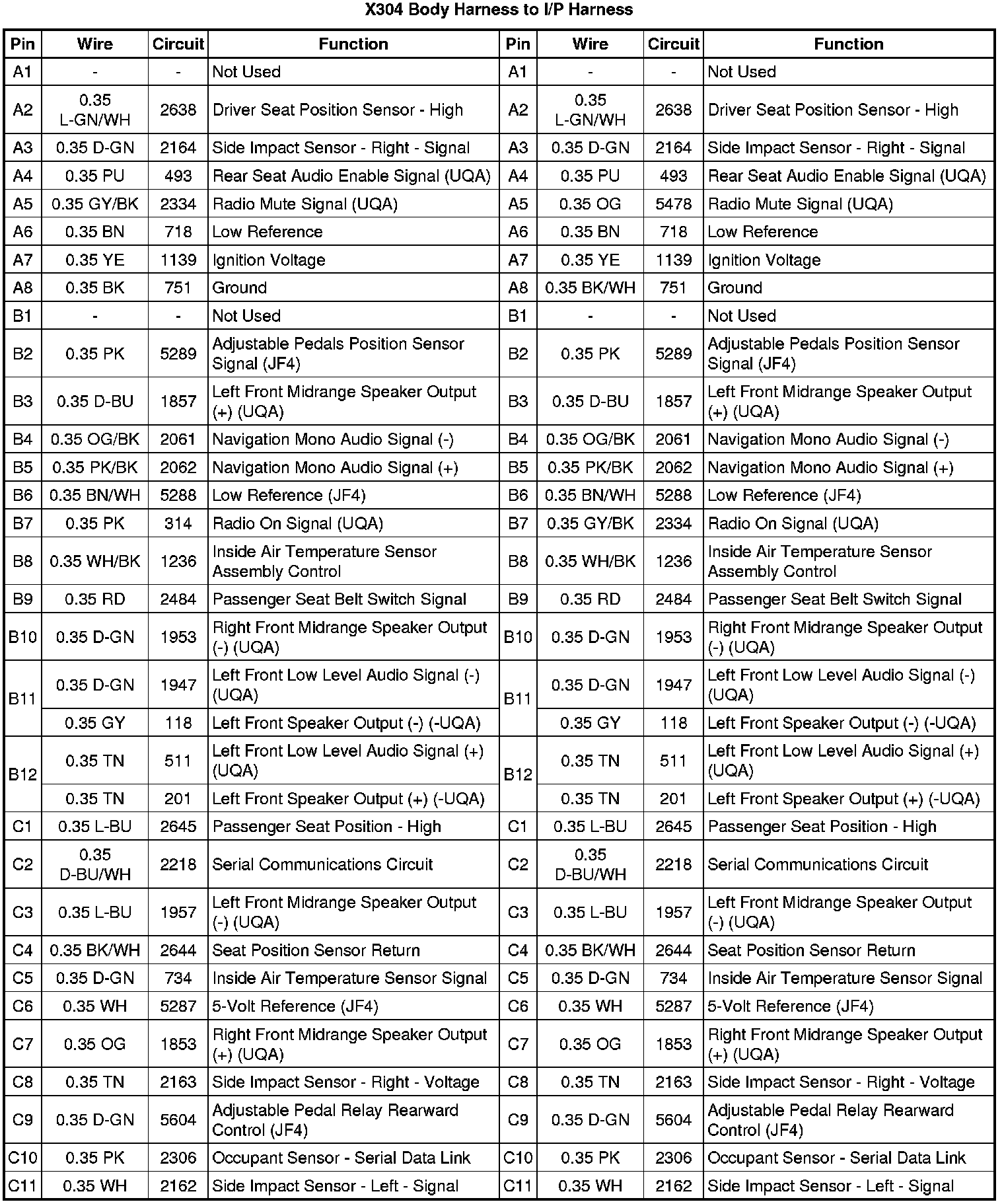 X304 Body Harness to I/P Harness