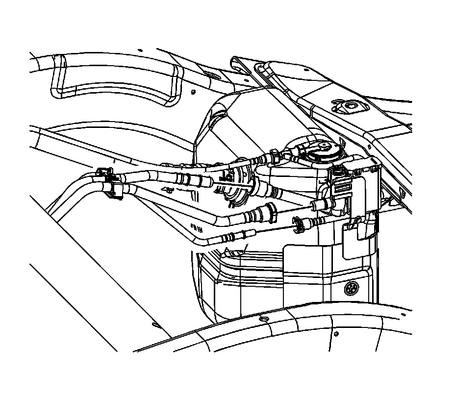 10. Connect the fuel filler pipe recirculation hose to the fuel tank. Refer to Plastic Collar Quick Connect Fitting Service (Plastic Collar Quick Connect Fitting Service).