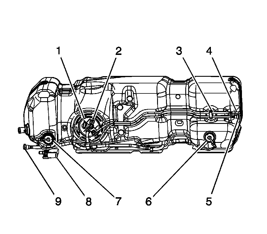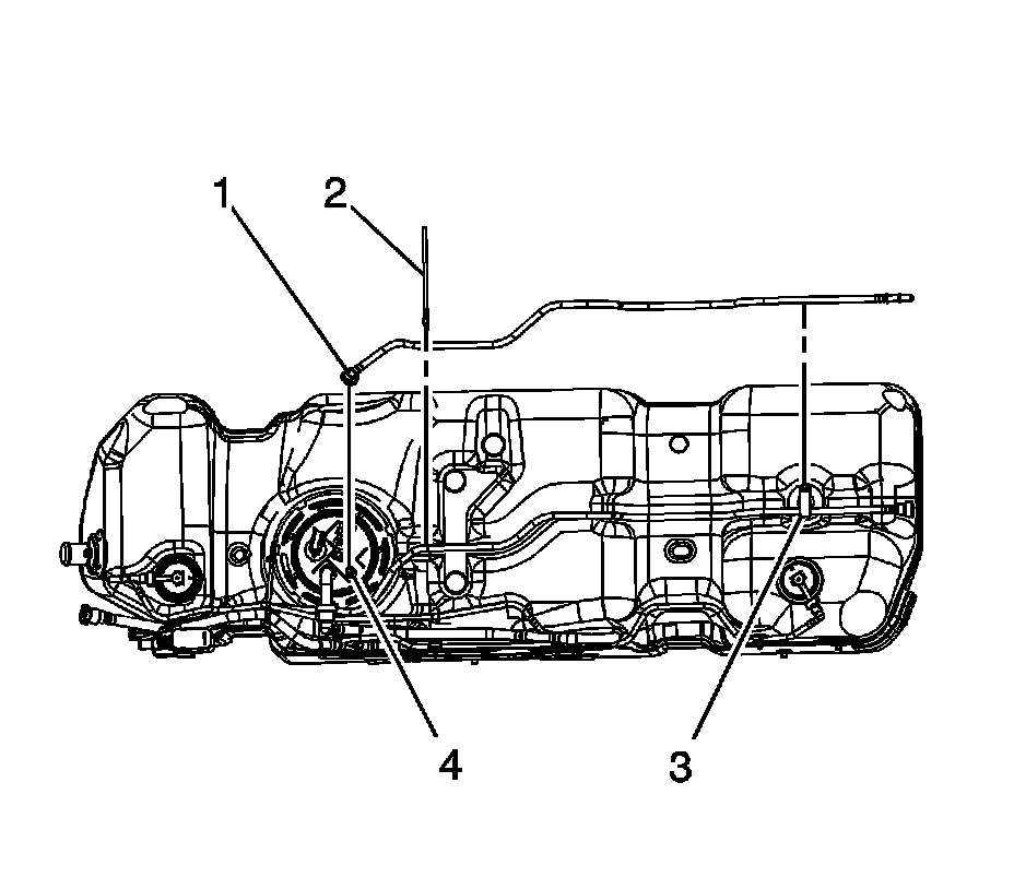 1. Install the fuel sender assembly (4) to the fuel tank. Refer to Fuel Sender Assembly Replacement (Service and Repair).