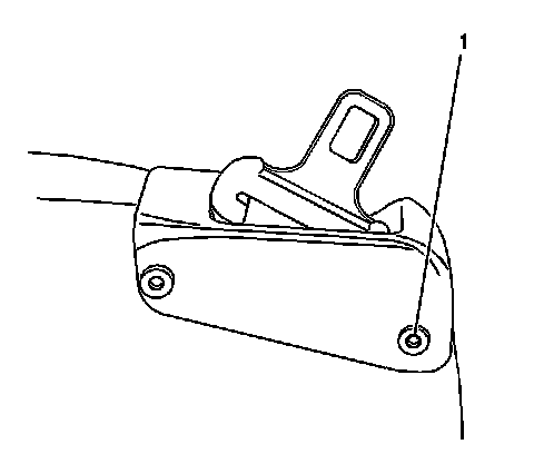 9. Remove the seat belt retractor bracket bolt (1) from the bracket and seat back frame.