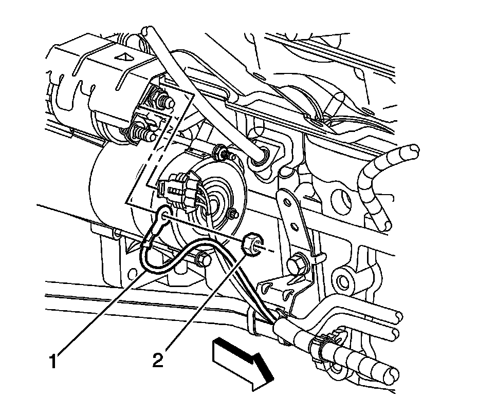 11. Remove the starter solenoid nut (2).