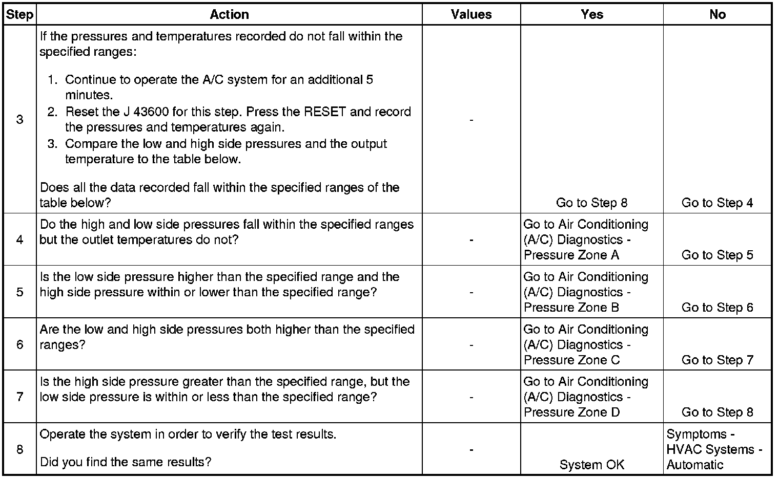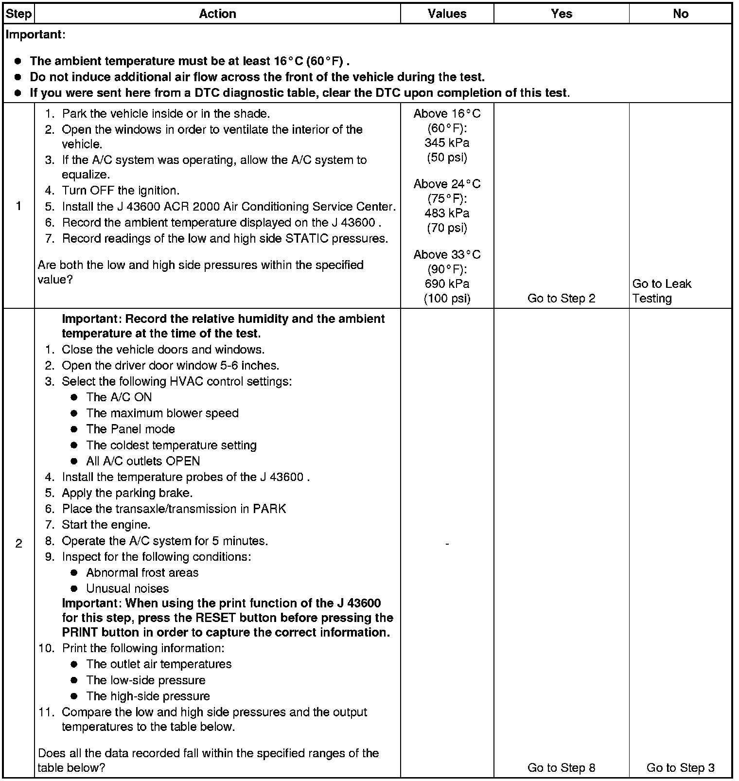 1. This step determines if the A/C system has at least the minimum refrigerant charge to operate the system without damage.