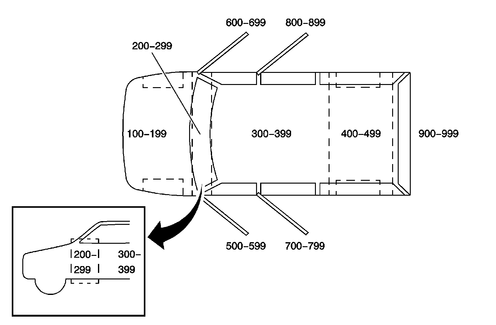 All grounds, in-line connectors, and splices have identifying numbers that correspond to where they are located in the vehicle. The following table explains the numbering system.