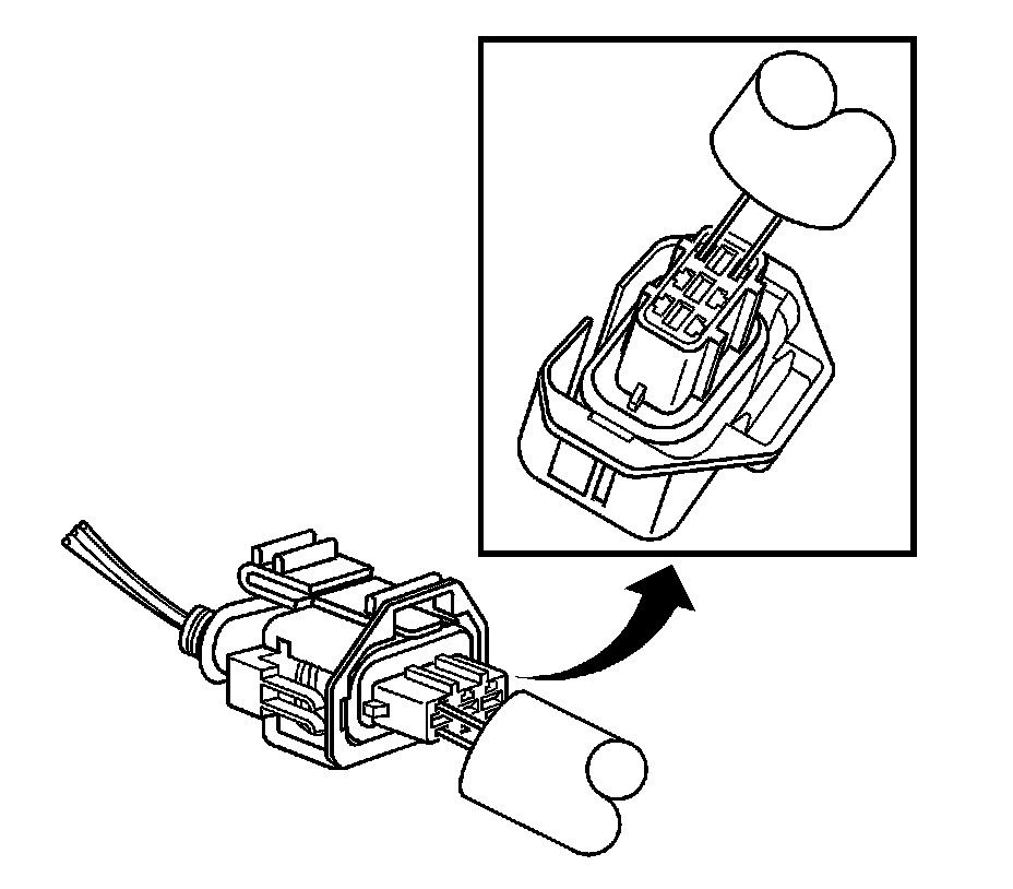 4. Insert the J 38125-561 tool into the 2 cavities on each side of the terminal at the front of the connector and push until you feel the tool disengage the terminal retainers. See the release tool cross reference in the Reference Guide of the J-38125 to ensure that the correct release tool is used.