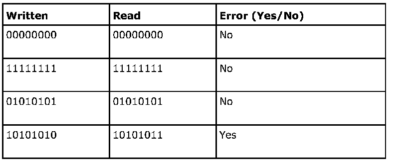 The table below shows an example of how an error is detected in a byte in the RAM: