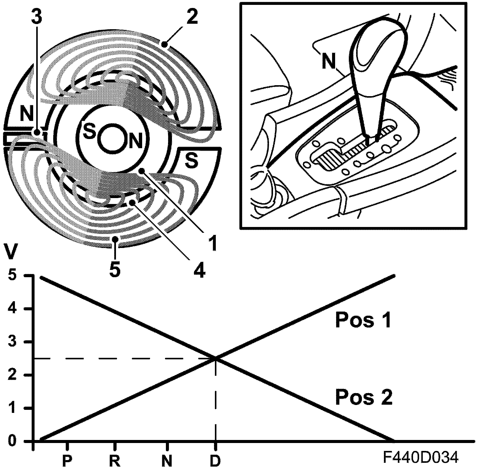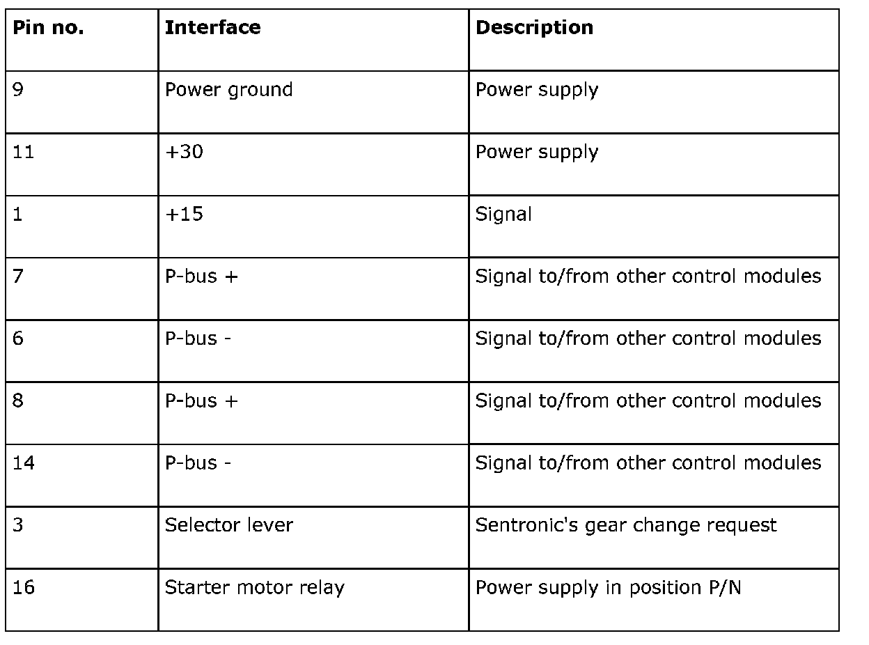 The TCM is mounted directly on top of the gearbox. The selector lever is integrated in the control module. The TCM is mounted so that the selector lever shaft goes through the control module. The selector lever position is calibrated with Tech2, there is no mechanical adjustment.