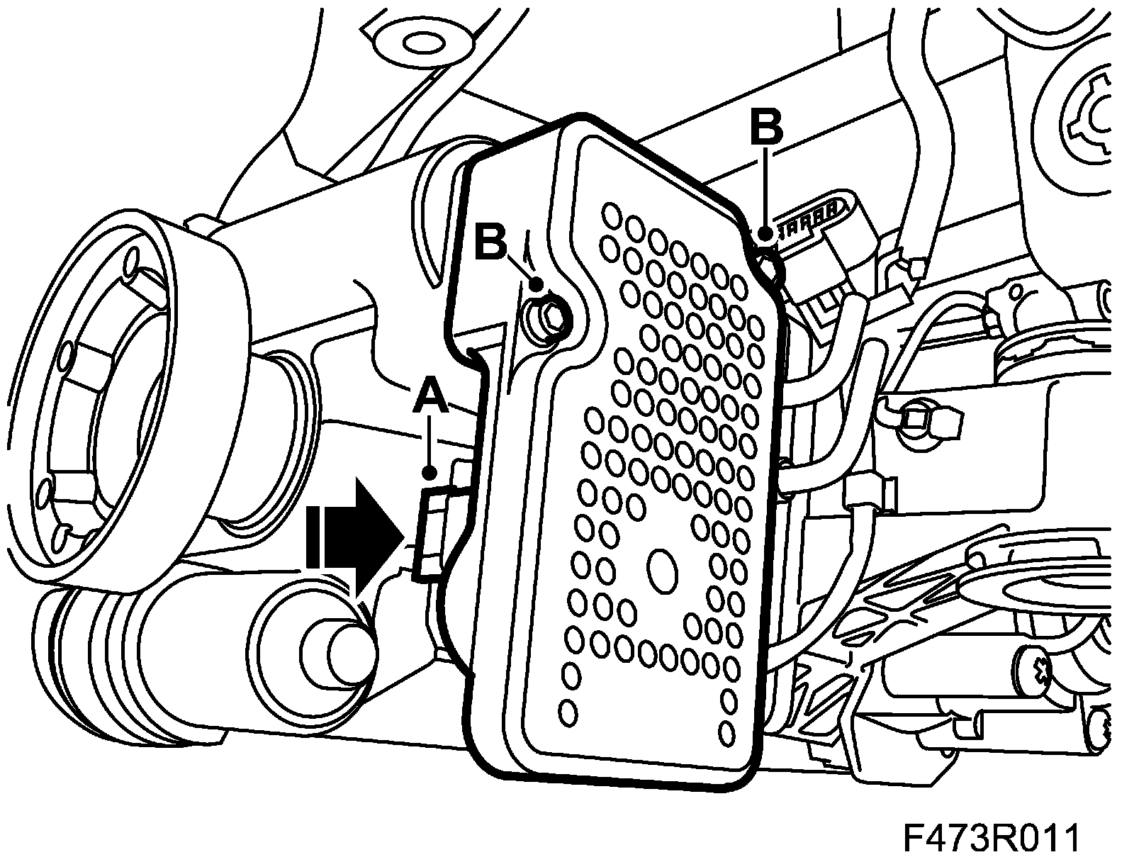 12. Remove the control module and the valve (B).