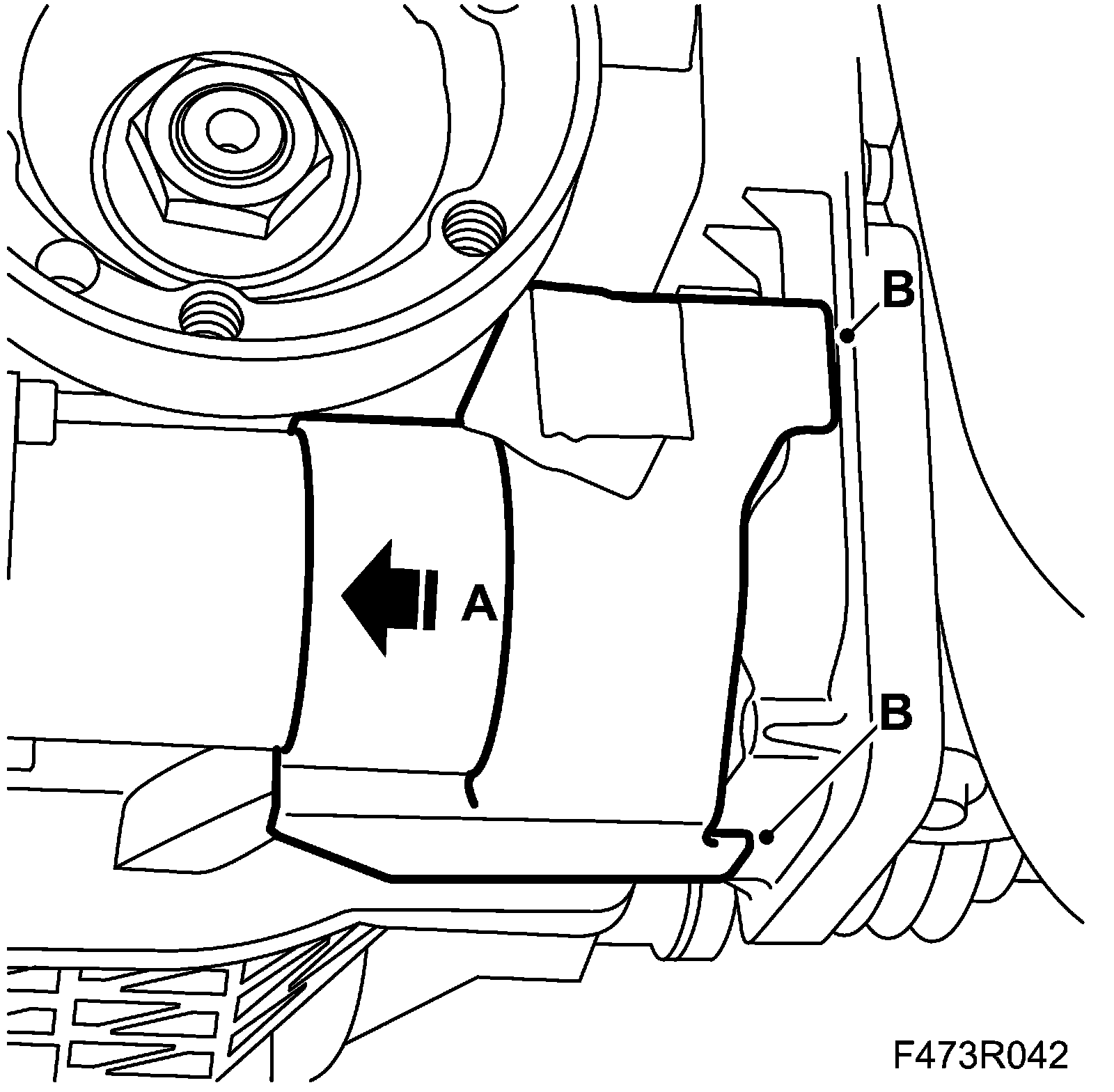 8. Use a column jack as support for the differential clutch, secure with strap (A).