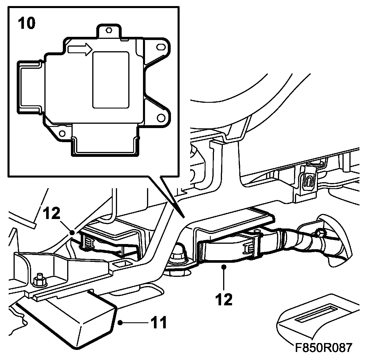 13. Lift up and carefully move the Airbag Control Module out between the aluminium frame and the floor.
