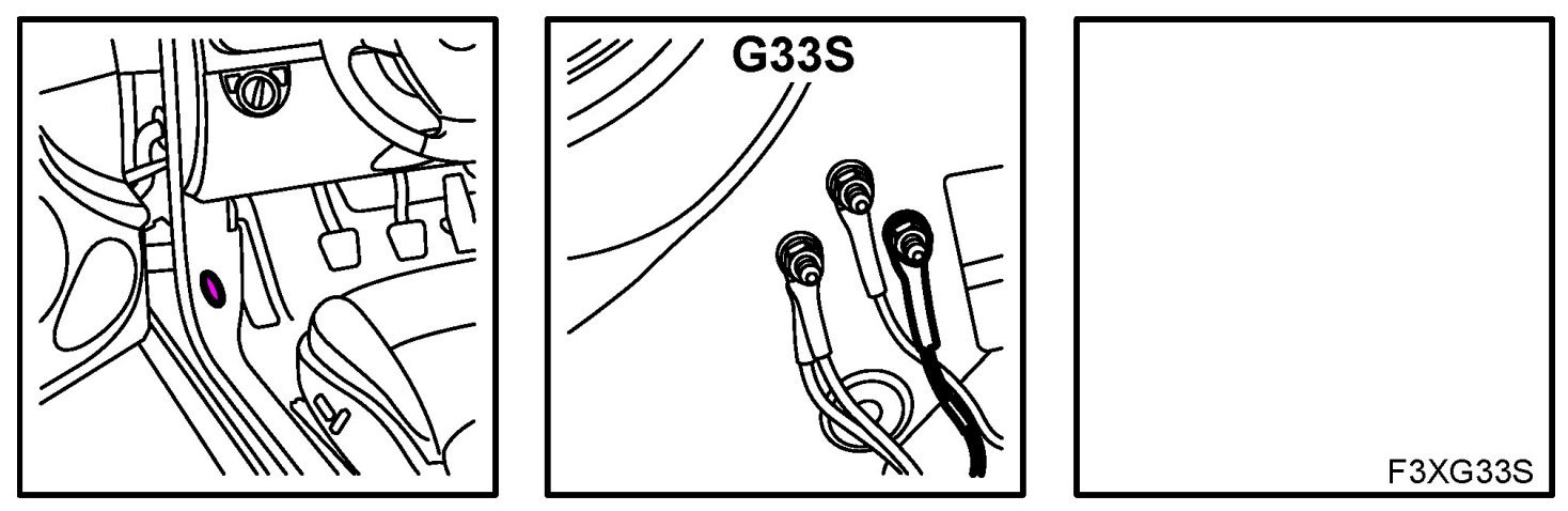 Location: At the floor below the left A-pillar (BK/WH cable)