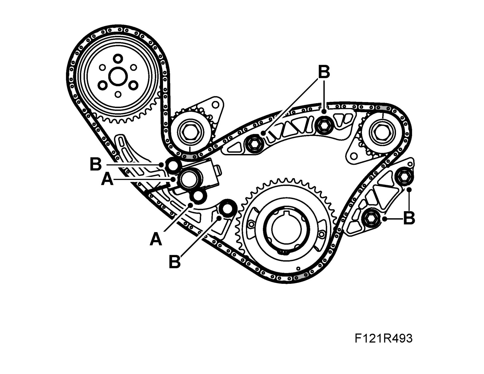 ^ The silver-colored link (B) must be fitted to the exhaust side's balancer shaft sprocket.