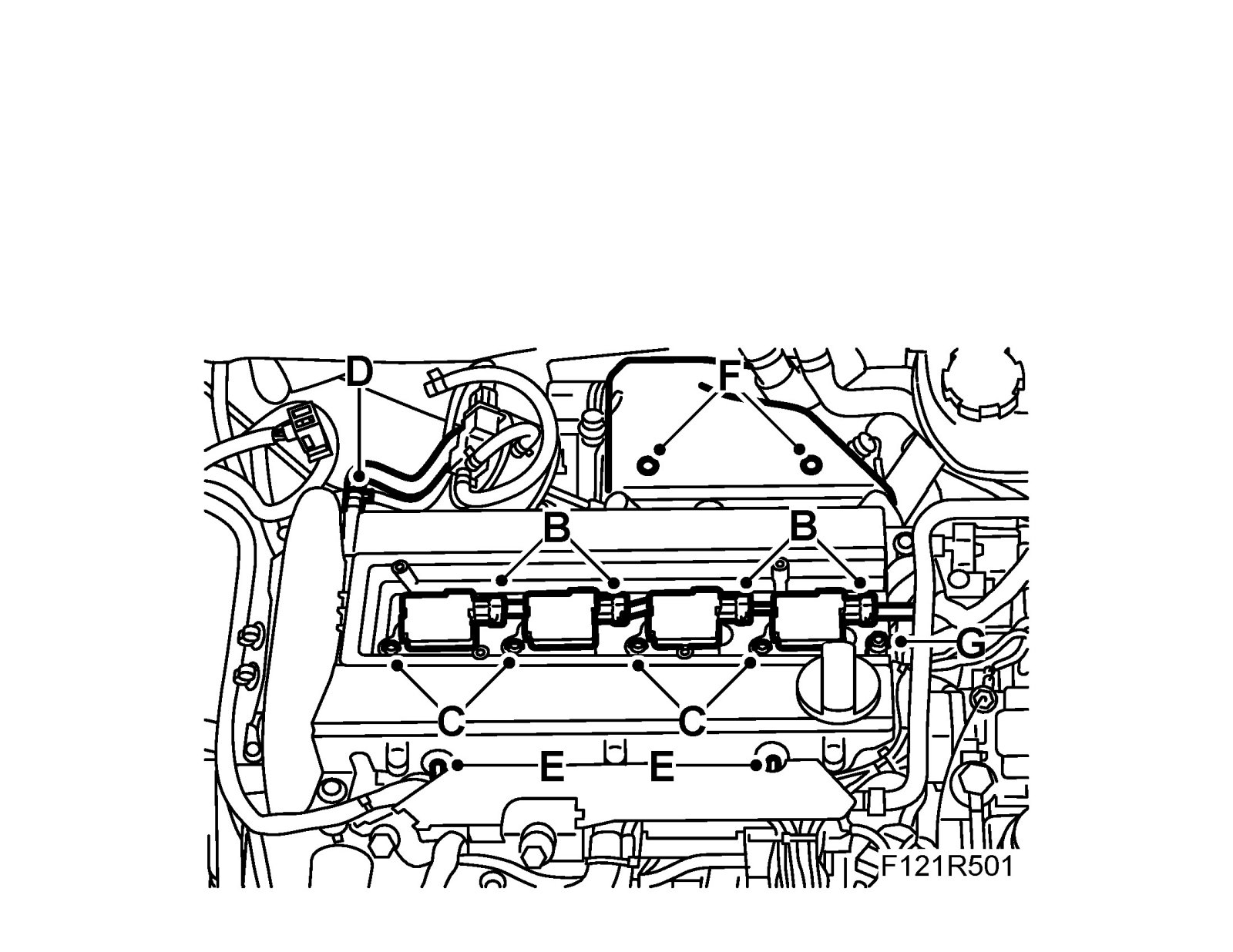 4. Remove the bolts (C), lift up each ignition coil and move aside. Start with the ignition coil for cylinder 1.
