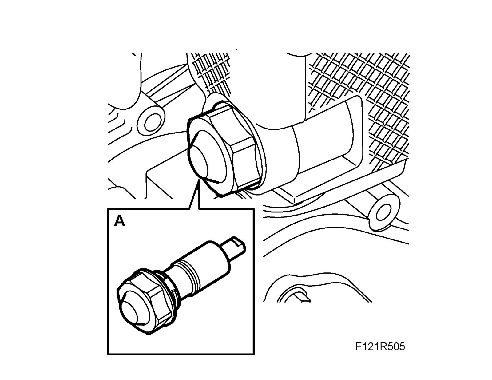 13. Remove the chain tensioner (A). Use 83 96 129 Oil filter tool, B207, and camshaft drive chain tensioner.