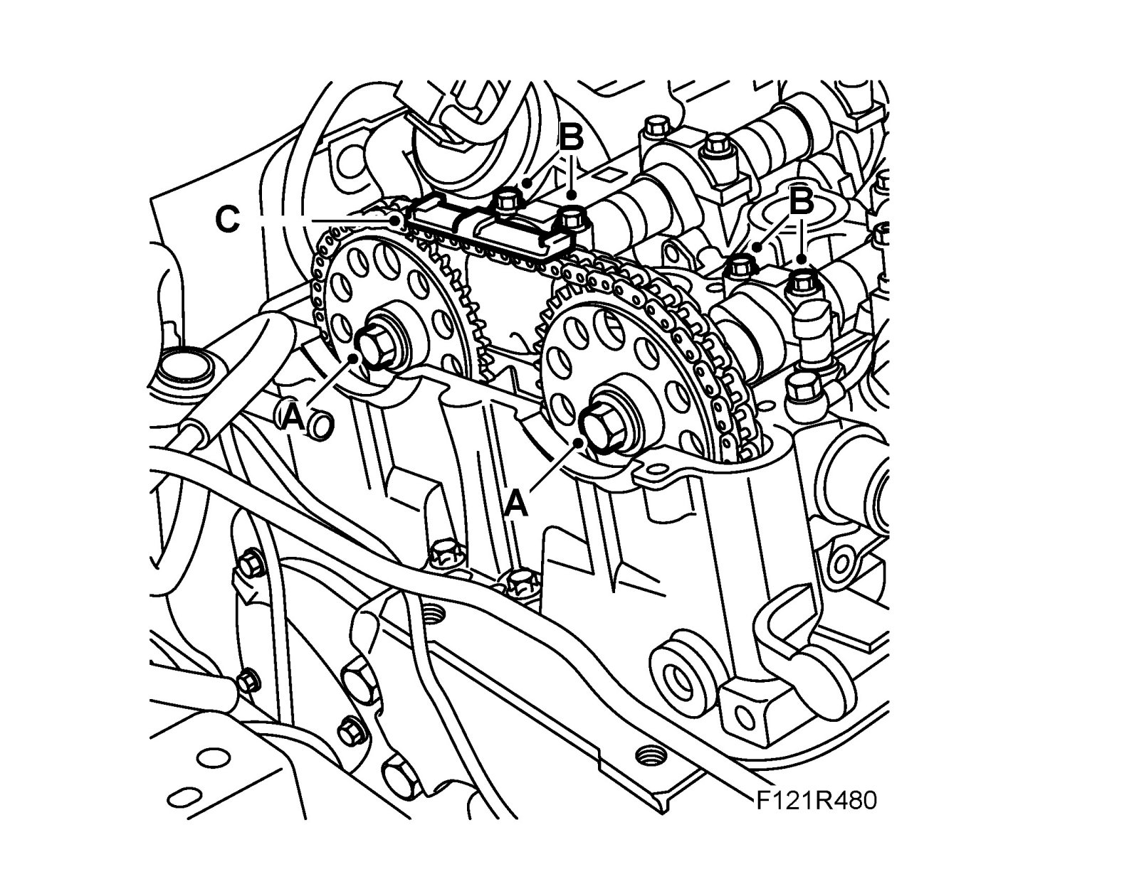27. Continue to tighten the camshaft gears to the final torque (C). Use a wrench to grip the camshaft flats.
