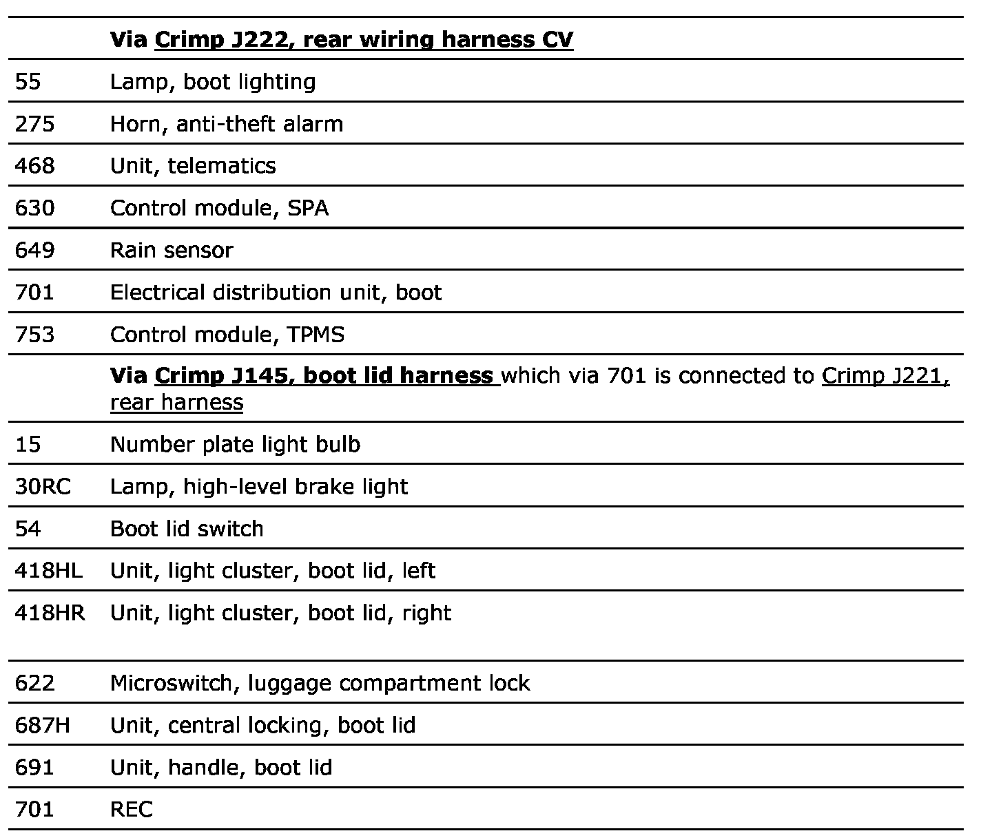 Location: In luggage compartment below left light cluster