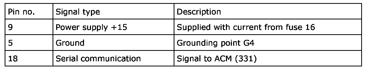 The control module contains a microprocessor, ROM and EEPROM. The control module sends information via a serial communication cable to ACM (331).