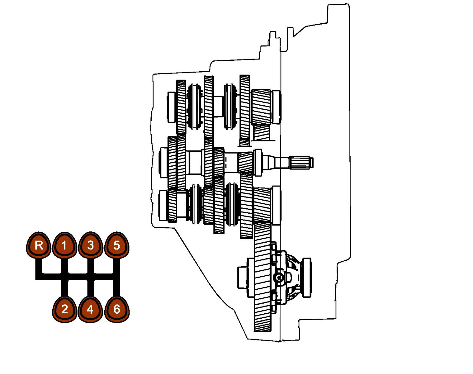 Press the gear positions for the power flow of the different gears. Neutral is in the center.