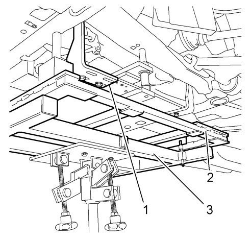 13. Install CH-49289 Support frame fixture (2) at the front suspension frame.