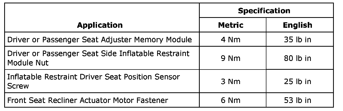Seats: Specifications