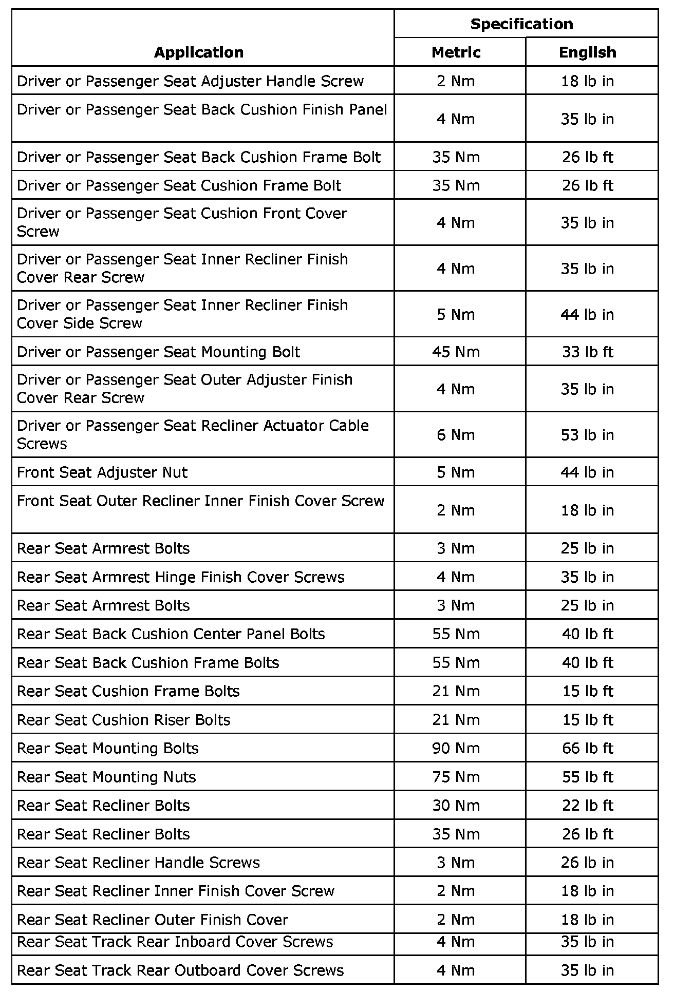 Fastener Tightening Specifications
