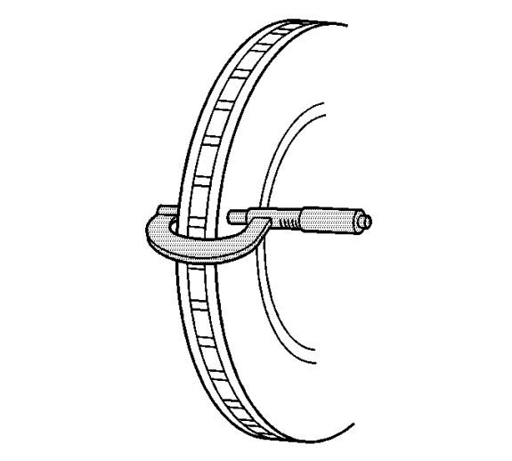 Ensure that the measurements are only taken within the friction surfaces and that the micrometer is positioned the same distance from the outer edge of the rotor, about 13 mm (1/2 in), for each measurement.