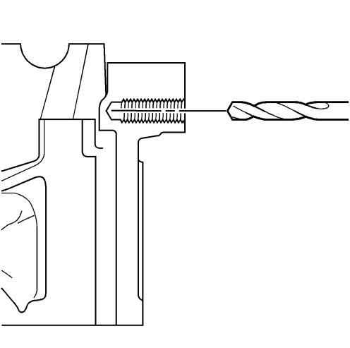 It is critical that the drilling, counterboring and tapping of the hole to be repaired follows the same centerline as the original hole.