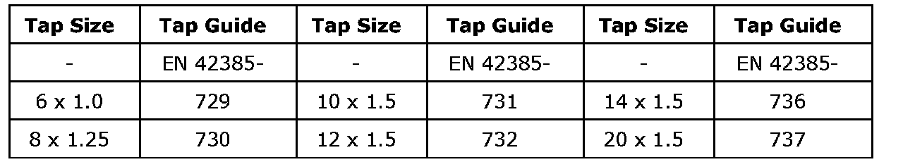 If the threaded hole being repaired has a base surface perpendicular to the hole centerline, tapping guides are available to aid in tapping the hole.