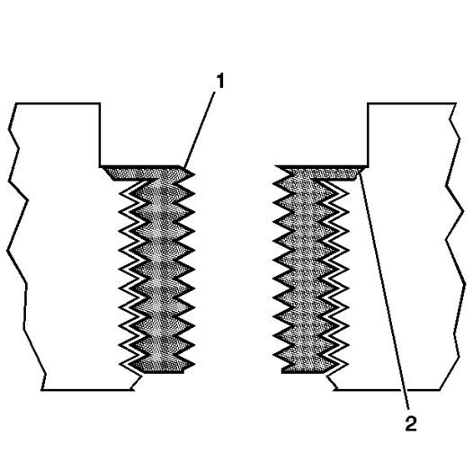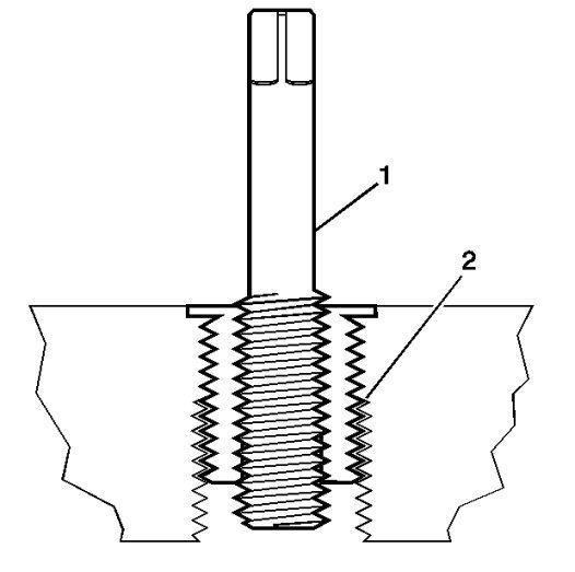 14. Inspect the insert (1) for proper installation (2) into the tapped hole.