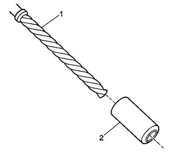 10. Apply threadlock sealant, EN 42385-109, LOCTITE 277(R) or equivalent (1) to the insert OD threads (2). Refer to Adhesives, Fluids, Lubricants, and Sealers for recommended sealant.