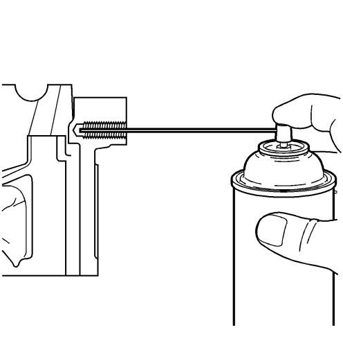2. Spray cleaner into the tapped hole. Refer to Adhesives, Fluids, Lubricants, and Sealers for recommended cleaner.