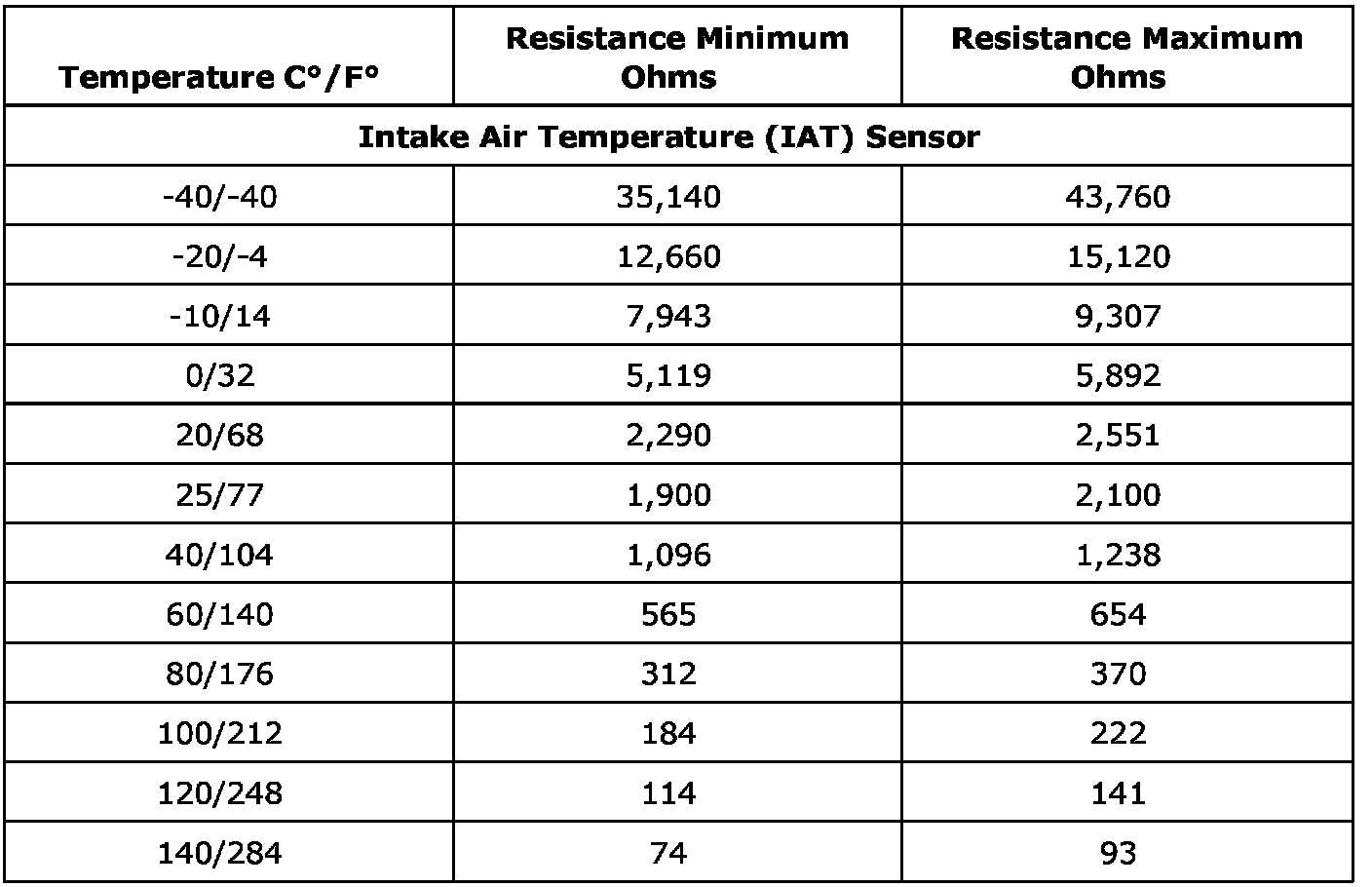 Temperature Versus Resistance - Intake Air Temperature Sensor