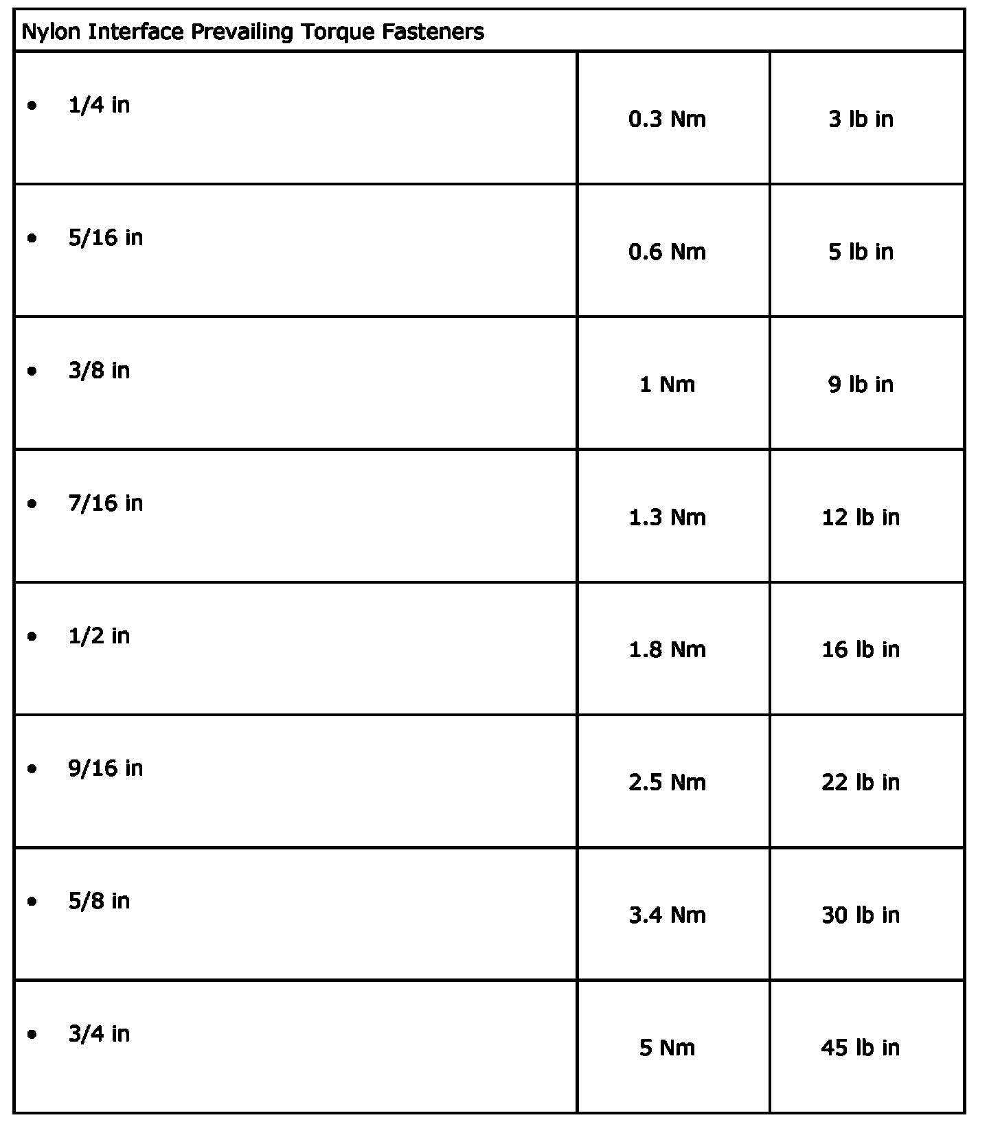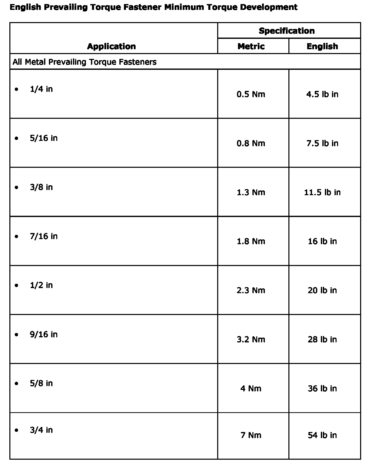 English Prevailing Torque Fastener Minimum Torque Development