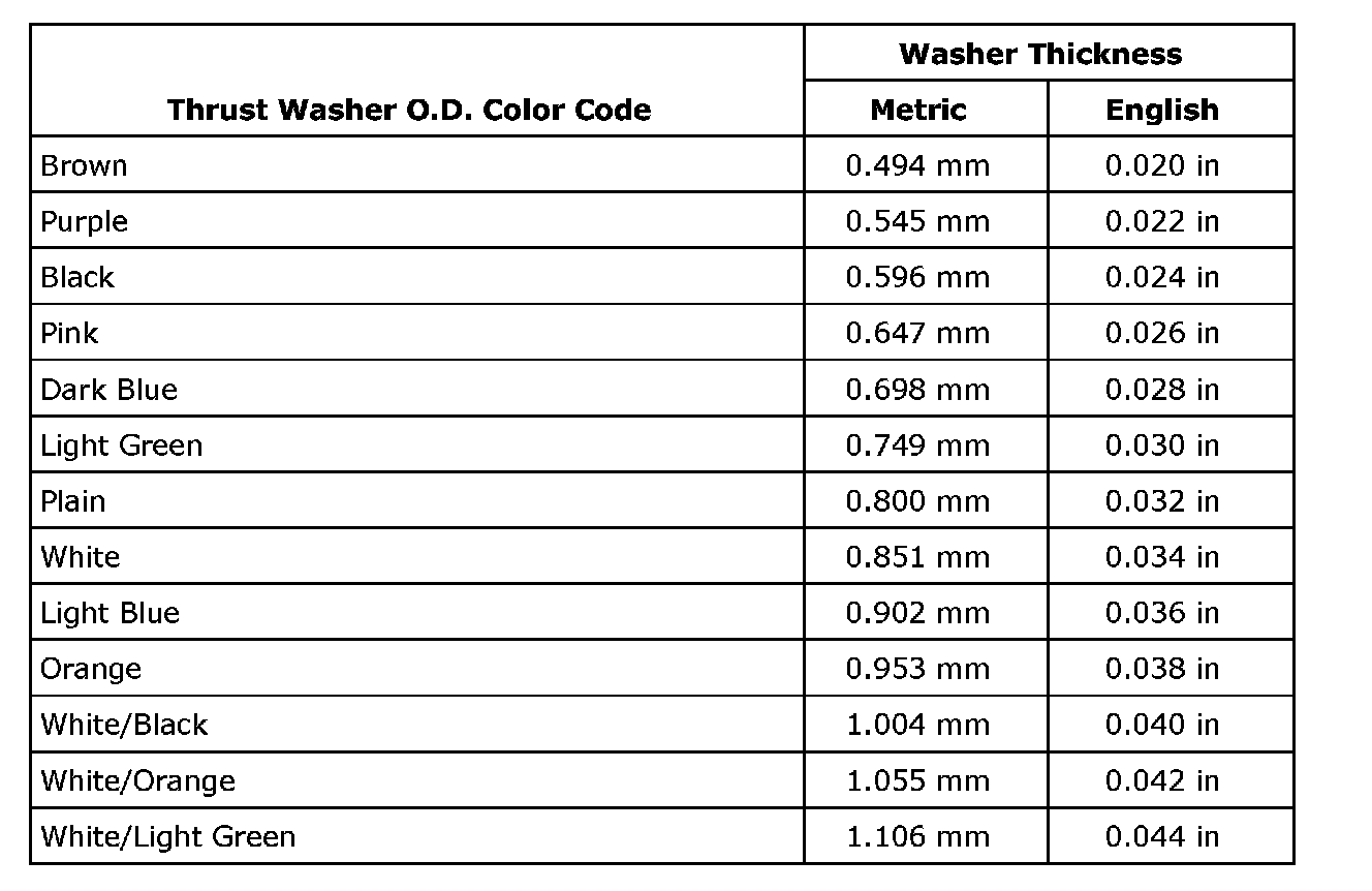 Front Differential Drive Pinion Gear and Differential Thrust Washer Selection Chart