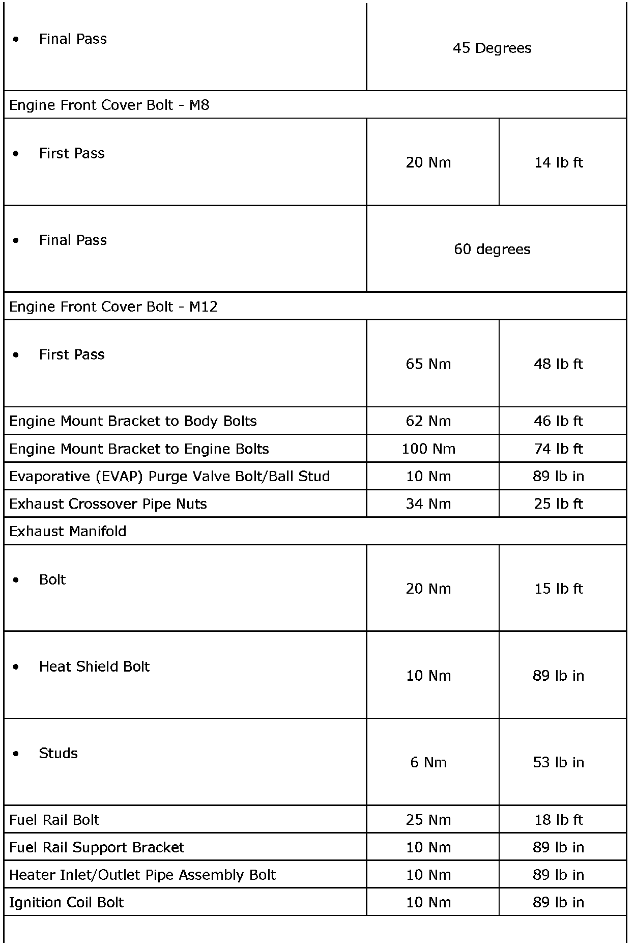 Fastener Tightening Specifications (LF1)