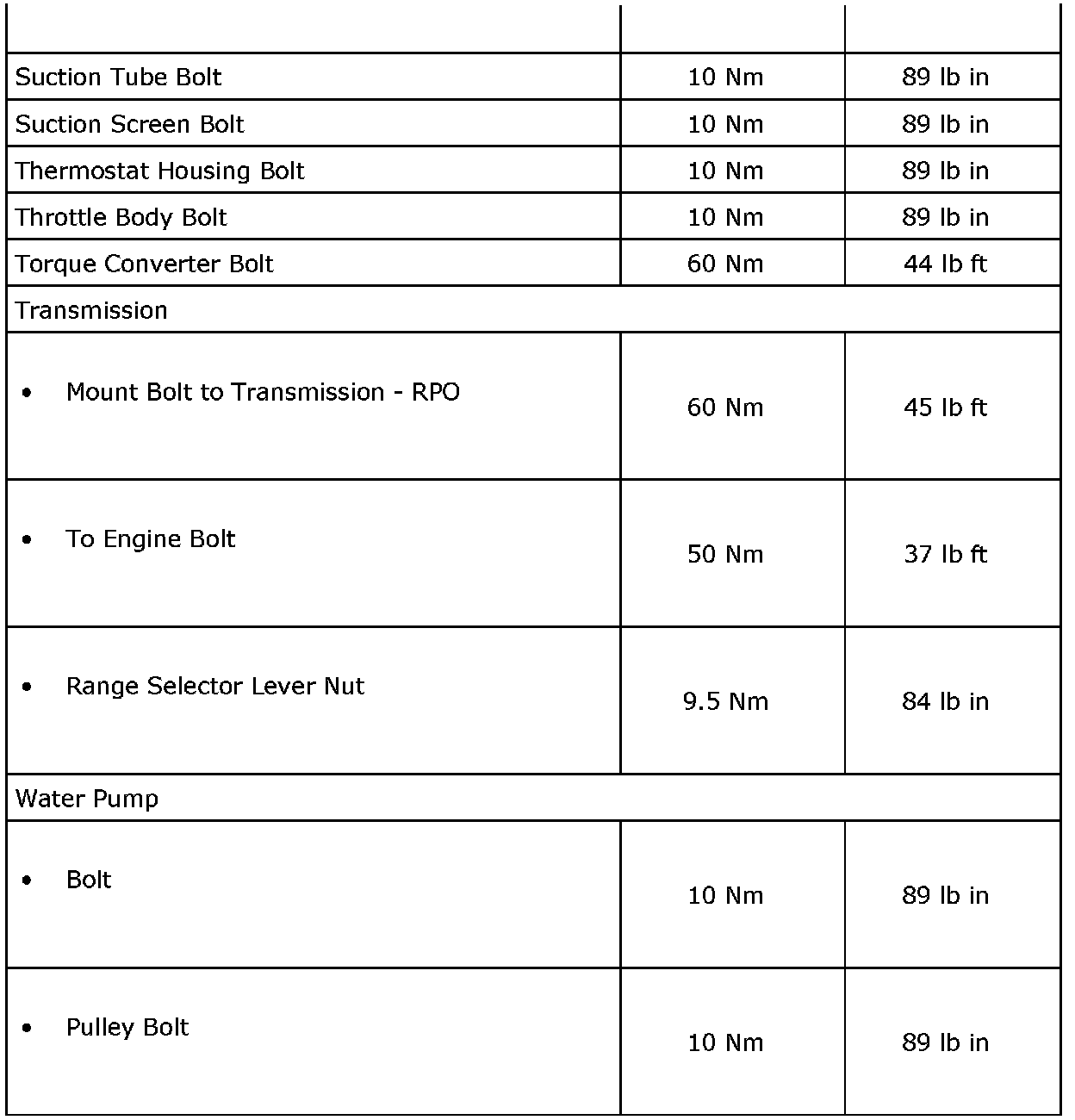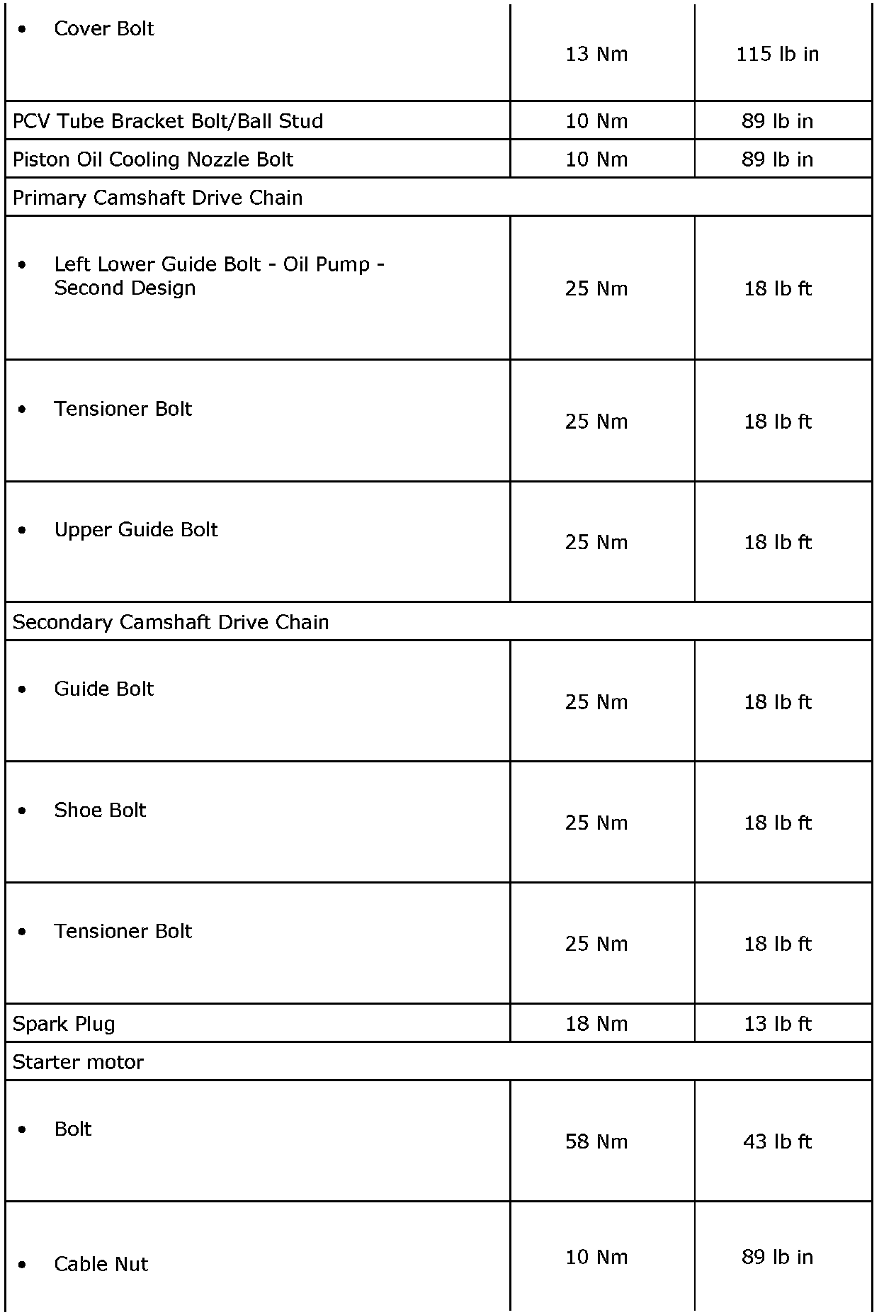 Fastener Tightening Specifications