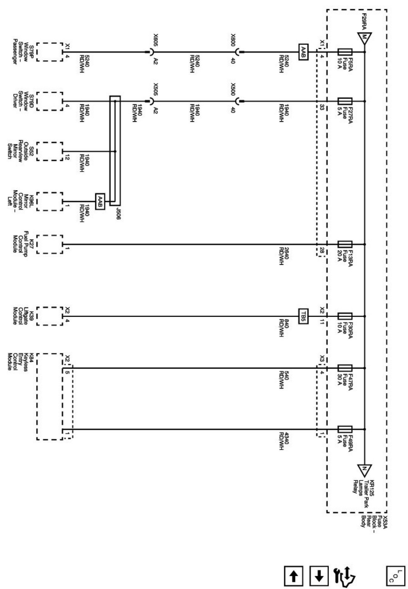 Power Supply Diagrams: The diagrams for the power supplies that may be feeding this system (+30, +15, +54, +X, and +B) ) can be found at Power and Ground Distribution diagrams. Electrical Diagrams