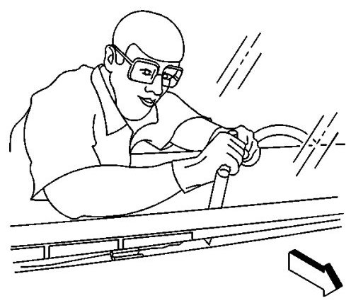 - Use J 24402-A, J 39032, or equivalent to remove the window.