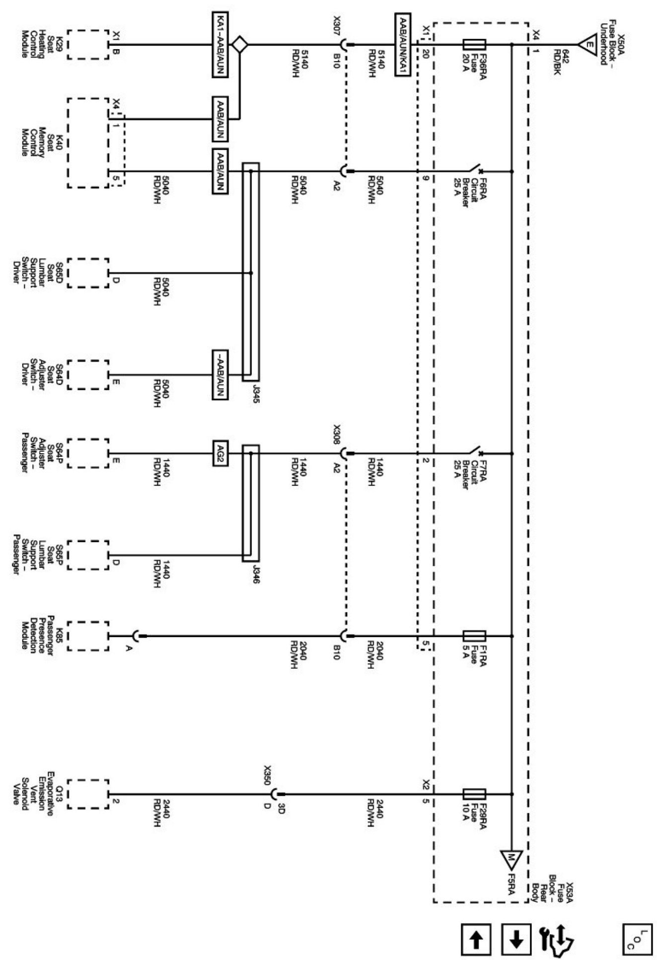 Power Supply Diagrams: The diagrams for the power supplies that may be feeding this system (+30, +15, +54, +X, and +B) ) can be found at Power and Ground Distribution diagrams. Electrical Diagrams