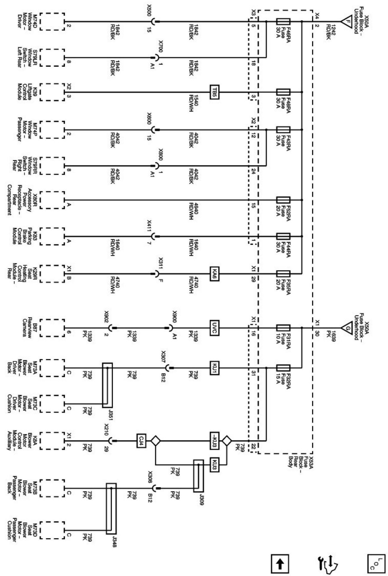 Power Supply Diagrams: The diagrams for the power supplies that may be feeding this system (+30, +15, +54, +X, and +B) ) can be found at Power and Ground Distribution diagrams. Electrical Diagrams