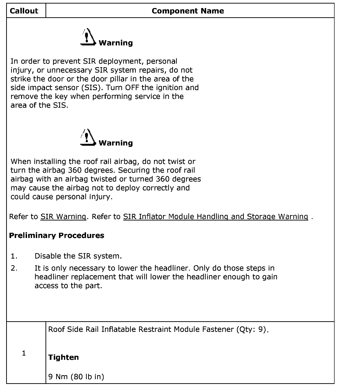 Roof Side Rail Inflatable Restraint Module Replacement