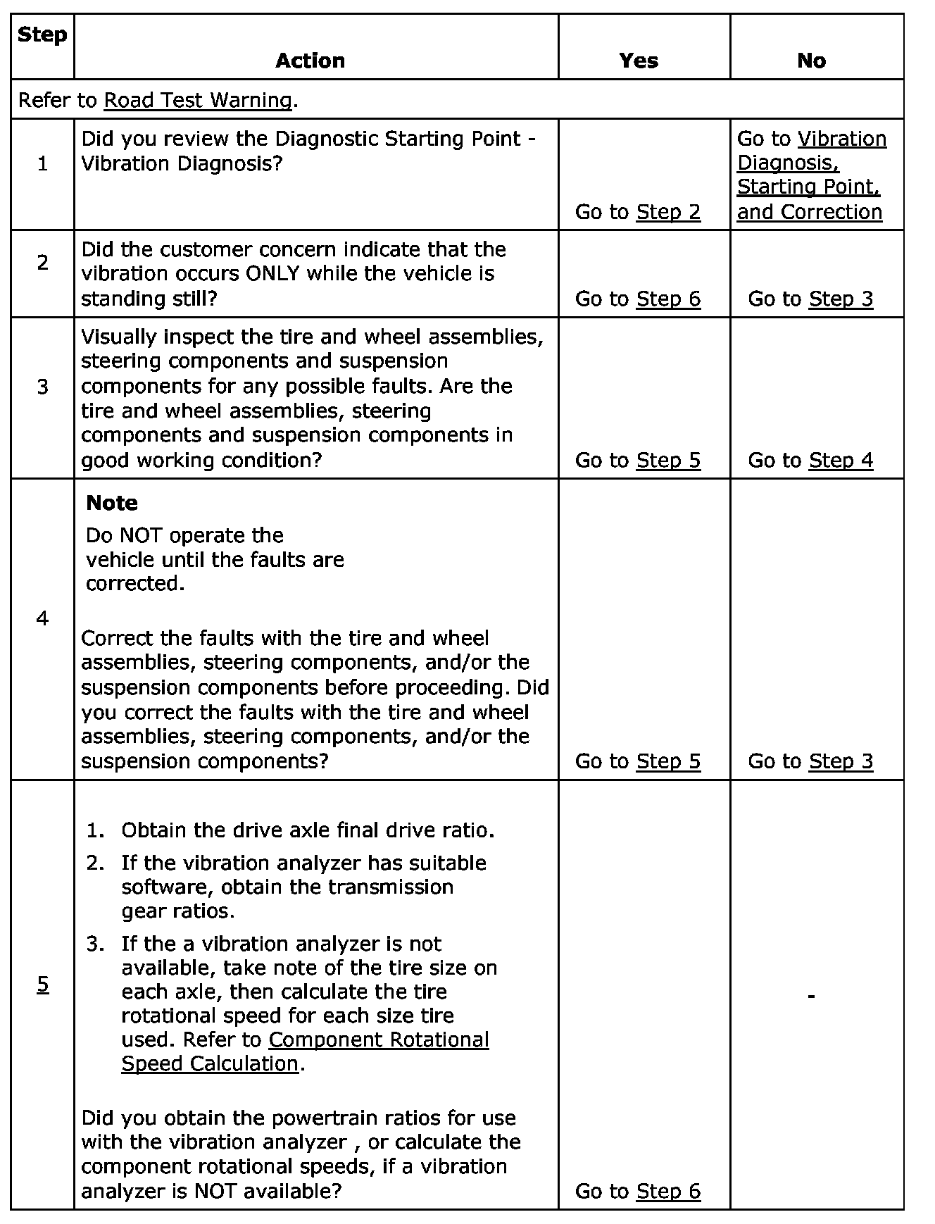 Obtaining rotational speed for the components rotating at tire/wheel speed is critical to systematically eliminating specific vehicle component groups. These component rotational speeds can be generated by using an electronic vibration analyzer, or through calculating them manually.