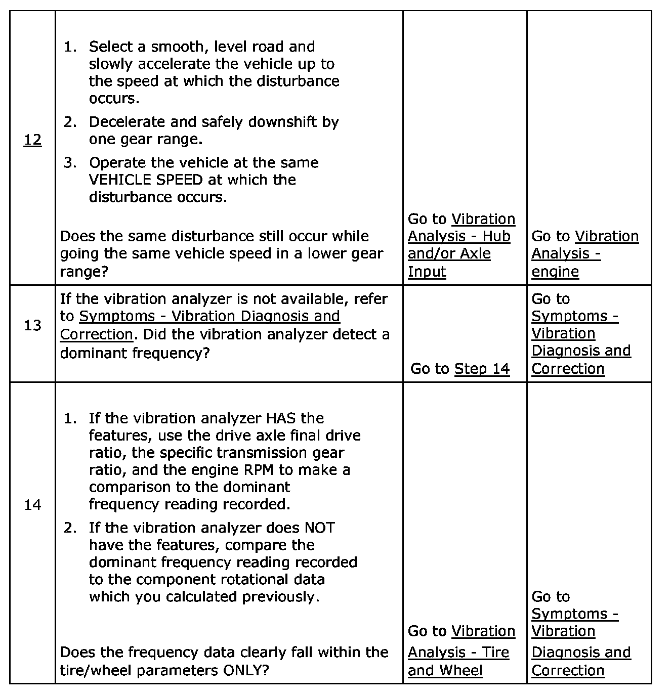 NOTE: Be certain to OBSERVE for disturbances that match the customer's description FIRST, then look at the vibration analyzer frequency which corresponds with that disturbance.