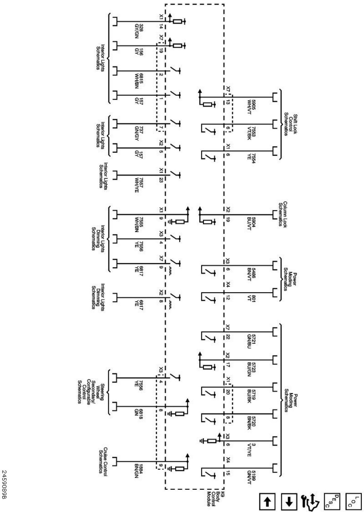 The diagrams for the power supplies that may be feeding this system (+30, +15, +54, +X, and +B) ) can be found at Power and Ground Distribution diagrams.