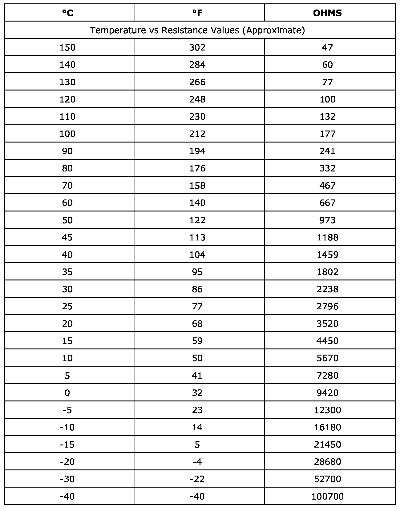 Temperature Versus Resistance (ECT)