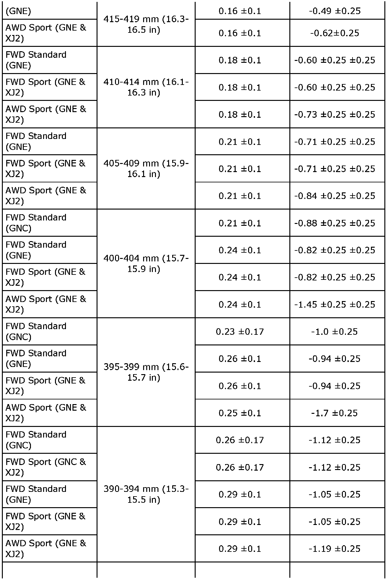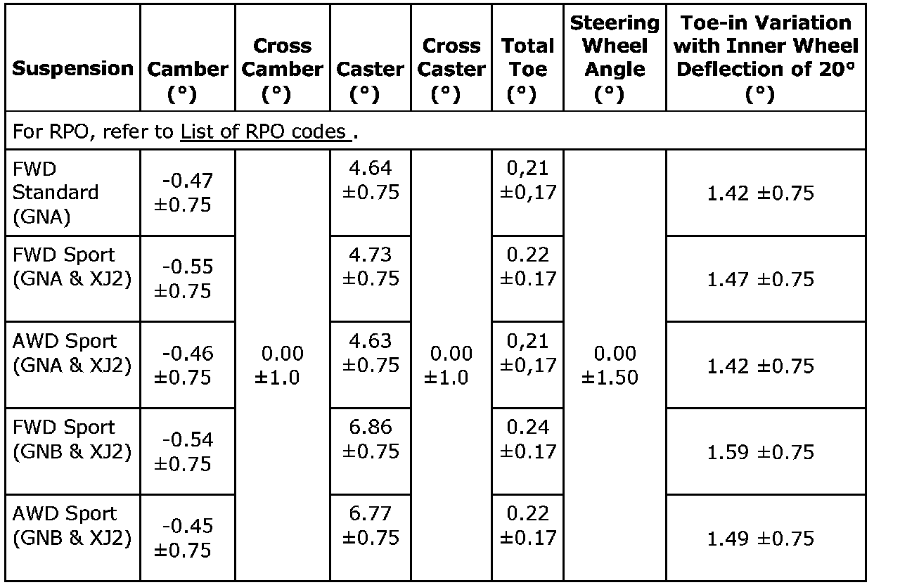 Wheel Alignment Specifications