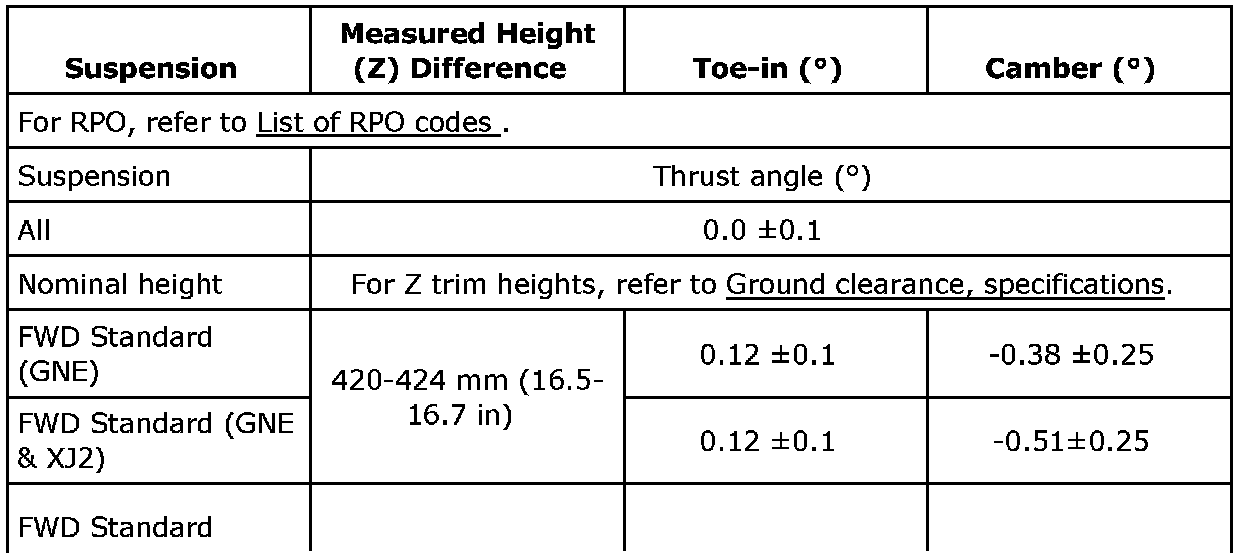 For descriptions see Description & Operation and Trim Height Inspection. Refer to Ground clearance specifications. Component Tests and General Diagnostics