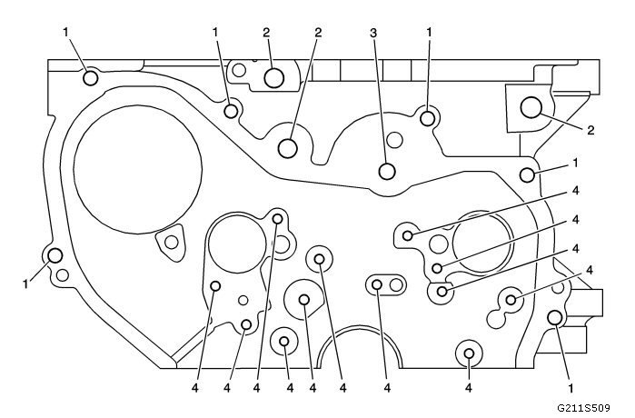 Thread Repair Specifications (LDK, LHU)Engine Block - Front View
