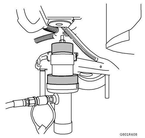 1. Separate the frame from the body approximately 70 mm. Refer to Drivetrain and Front Suspension Frame Front Crossmember Replacement (GNA) Drivetrain and Front Suspension Frame Front Crossmember Replacement (GNB).