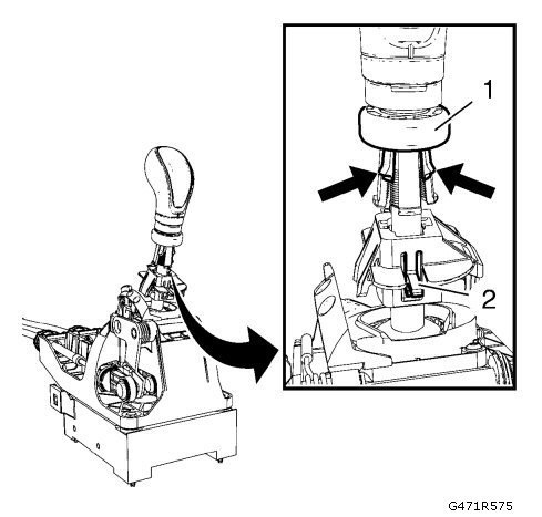 8. Remove reverse gear block (2) from transmission control lever knob.